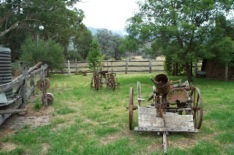 The result is well worth a visit. Outside the hut in the yard is a collection of crop farm machinery. Against the exterior walls lie equipment used in and around the farm, hut and stables of the era. Most in a close to useable condition.