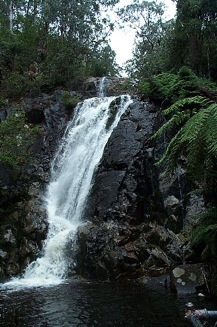 Marysville (quite a European name) is a timber driven town on the way to the Lake Mountain skiing fields. I was quite astounded by the number of ski hire outlets in this little town, as I didn't realise how close it (and Melbourne) was to a snow field. A place with a good feel to it. I dealt with several very friendly and helpful people in the business here. Just outside of Marysville are the Steavenson Falls. These falls are within the Steavenson Falls Natural and Scenic Reserve and are lit at night. (Photos : Steavenson Falls; timber stockpile just south of Marysville)